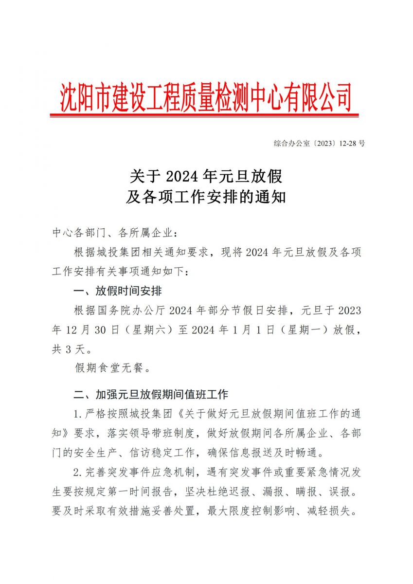 2024元旦放假通知